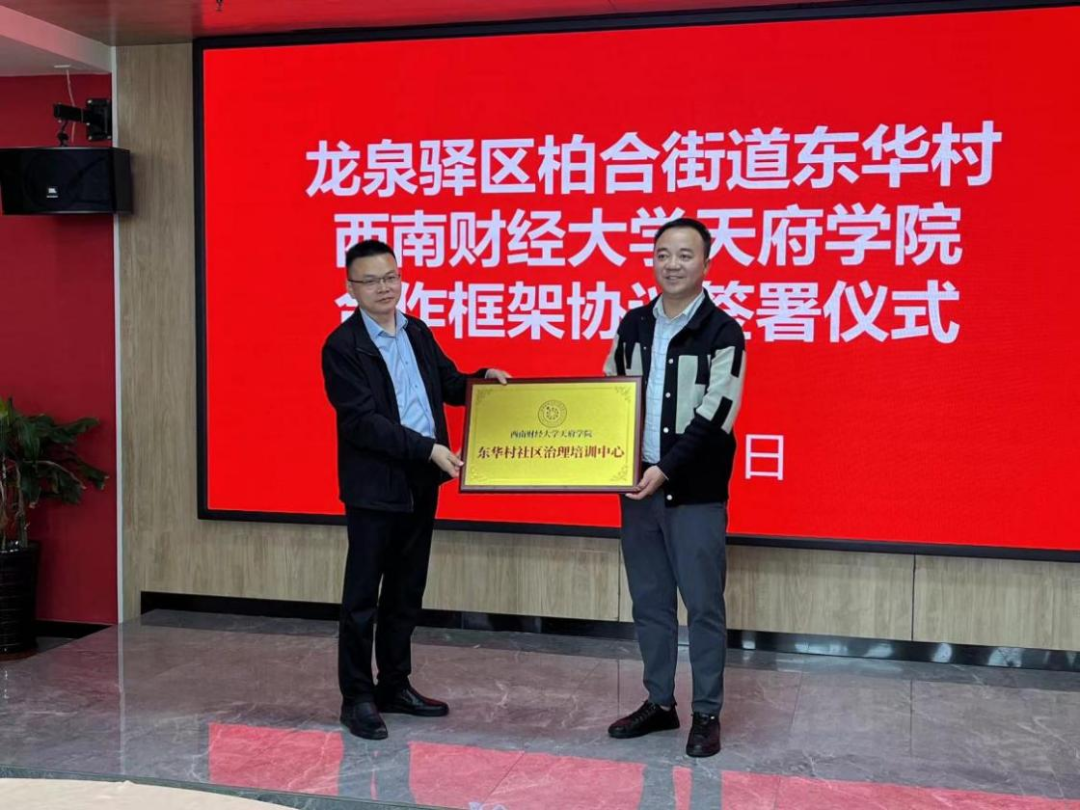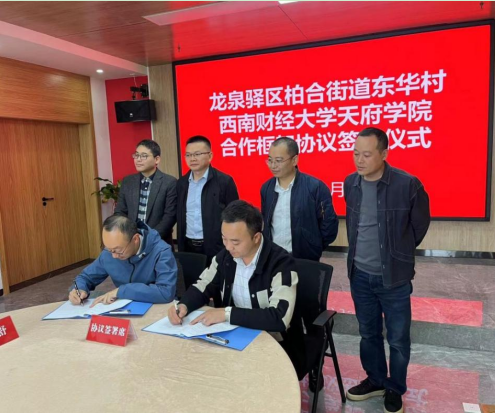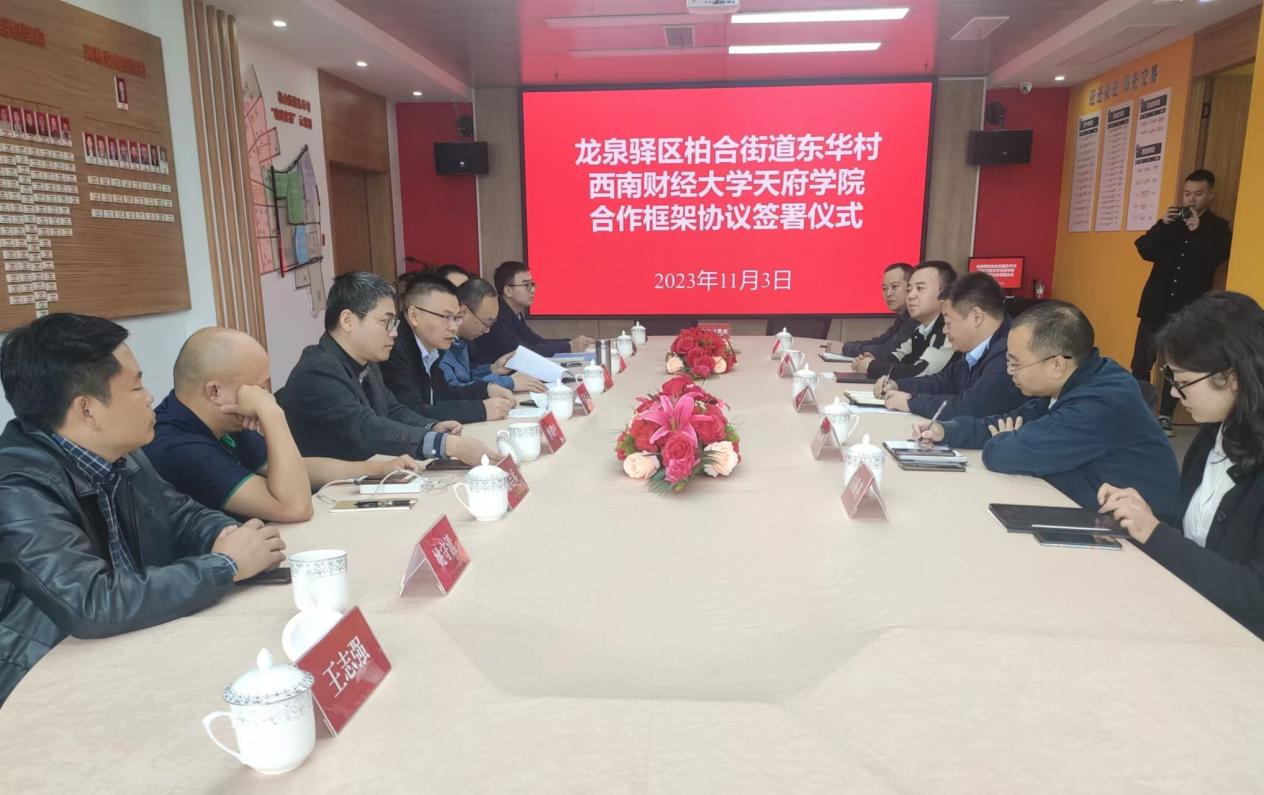 11月3日,学校与龙泉驿区柏合街道东华村合作框架协议签署仪式在东华村党群服务中心举行。西南财经大学天府学院副校长苟兴才、现代服务管理学院副院长何亮、西南财经大学天府学院西部农业品牌研究院执行院长李耀中、柏合街道办事处主任廖文锴、东华村党委书记雷文生等参加签署仪式。