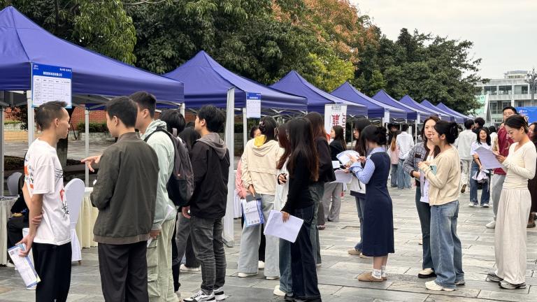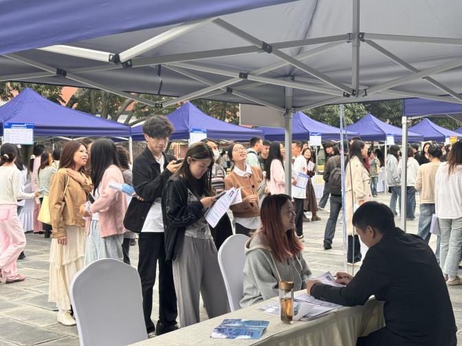 正值“金九银十”毕业生求职关键期,为深入贯彻落实党中央、国务院和教育部决策部署,抢抓秋招关键期,发挥校园招聘主渠道作用,助力2026届毕业生更加充分高质量就业,10月16日,由绵阳市人力资源和社会保障局、绵阳市就业创业促进中心主办,西南财经大学天府学院就业指导中心与绵阳科技城新区管委会联合举办的“就在新区·创享未来”科技城新区就业服务活动之走进西南财经大学天府学院专场招聘会在天府学院绵阳校区光华广场顺利举办。
