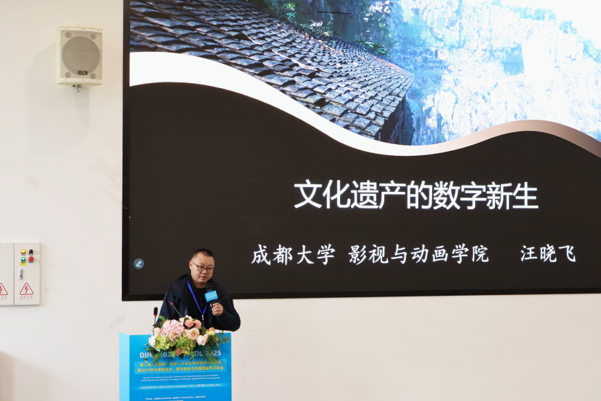在主旨发言环节,五位专家学者从不同角度分享了前沿研究成果。中国科学院大学二级教授孟建伟以《科学文化》为题,从哲学层面剖析了数字人文的时代意义,强调科学文化与人文精神的融合是数字时代的显著特征。台湾科技大学前瞻智能影像暨视觉技术研究中心主任郭景明通过视频连线,介绍了智能影像处理技术的最新进展,特别是在文化遗产数字化保护方面的创新应用。成都大学教授汪晓飞以《文化遗产的数字新生》为题,展示其团队在三维重建技术上的突破,结合案例阐释数字技术如何为文物注入新活力。德阳市文联二级调研员马联松从地方党史研究出发,探讨了德阳丰富历史文化资源如何借助数字化手段实现更好的保护与传播。学校艺术与传媒学院院长李文波教授则以《天府学研究》为主题,系统阐述了数字时代人文艺术研究的新范式与新方法。