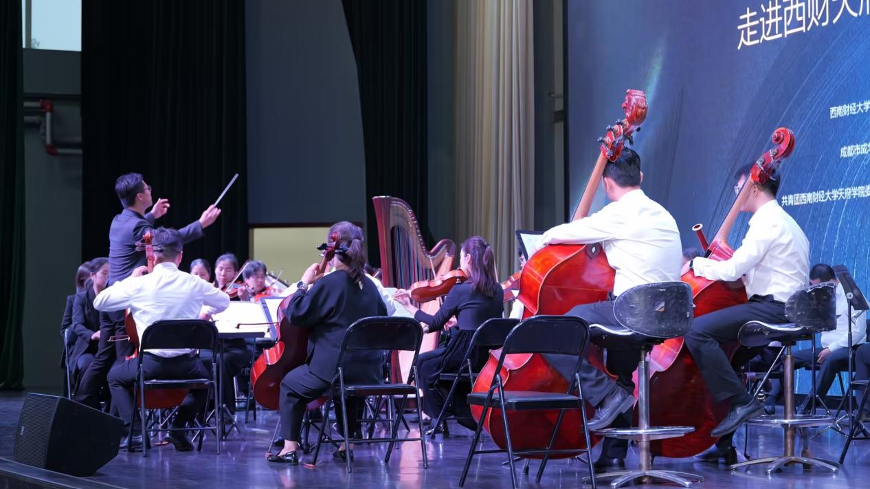 本次活动由西南财经大学天府学院与四川爱乐乐团联合主办,成都市成华区龙潭街道院山社区协办,共青团西南财经大学天府学院委员会、西南财经大学天府学院美育教学中心共同承办。校党委书记、省政府督导专员韩秀英致欢迎辞。她指出,美育是落实立德树人根本任务的重要载体。学校长期坚持构建以课程教学为基础、艺术实践为载体、校园文化为依托的一体化美育育人体系。本次专场音乐会是学校推动高雅艺术进校园的重要实践,旨在以乐润心、以艺育人,不断提升学生审美与人文素养,助力学生德智体美劳全面发展。