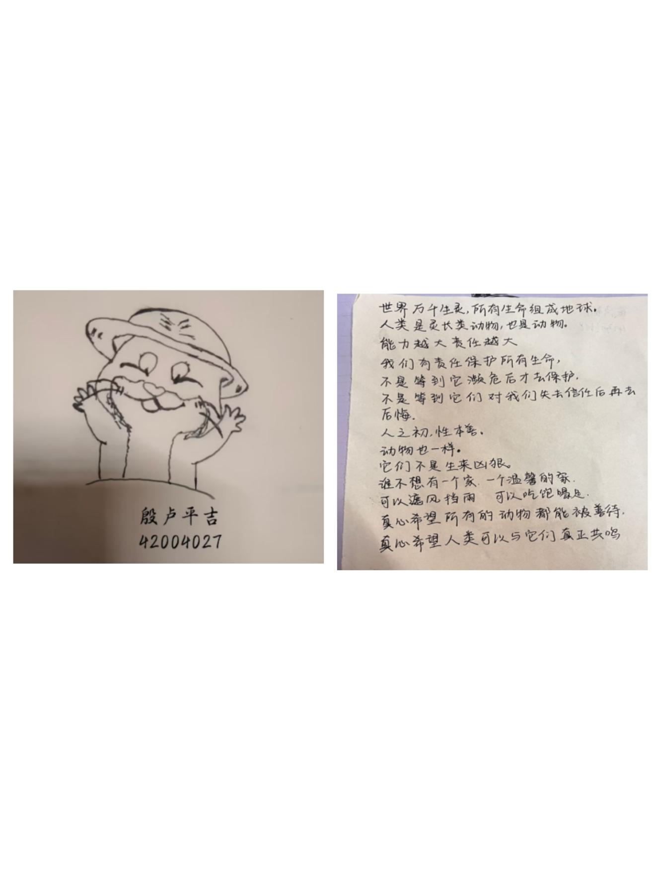 本次活动分为线上、线下两种形式,同学们积极报名,踊跃参与。线上参与方式主要为进行有关动物保护的答题,线下则是收集有关保护珍稀动物的宣传语并绘制一种动物。活动开展阶段,同学们用心写下保护珍稀动物的语句,绘画出各种形态的小动物,尽情施展自己的才华。