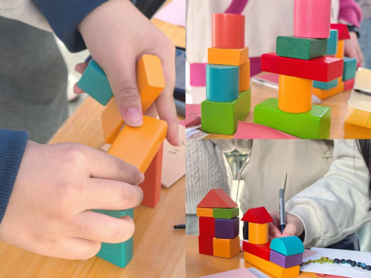 “筑塔寄愿”祈福塔搭建活动,打破了传统祈福仪式的时空局限,将古人“登高筑台以祈平安”的意象,转化为可触可感的手工创作。现场提供的积木与制作指南,成为连接传统与现代的纽带——学子们亲手拼接的不仅是错落的塔身,更是将对长辈的祝福、对生活的期许,具象化为一座座“理想祈愿塔”,并以个性化命名赋予其独特意义。这一过程,既是对重阳“祈福消灾”民俗的创造性转化,也让当代青年在动手实践中,重拾古人“以形载意”的表达智慧,让抽象的情感与传统的礼俗,在指尖的搭建中自然交融。