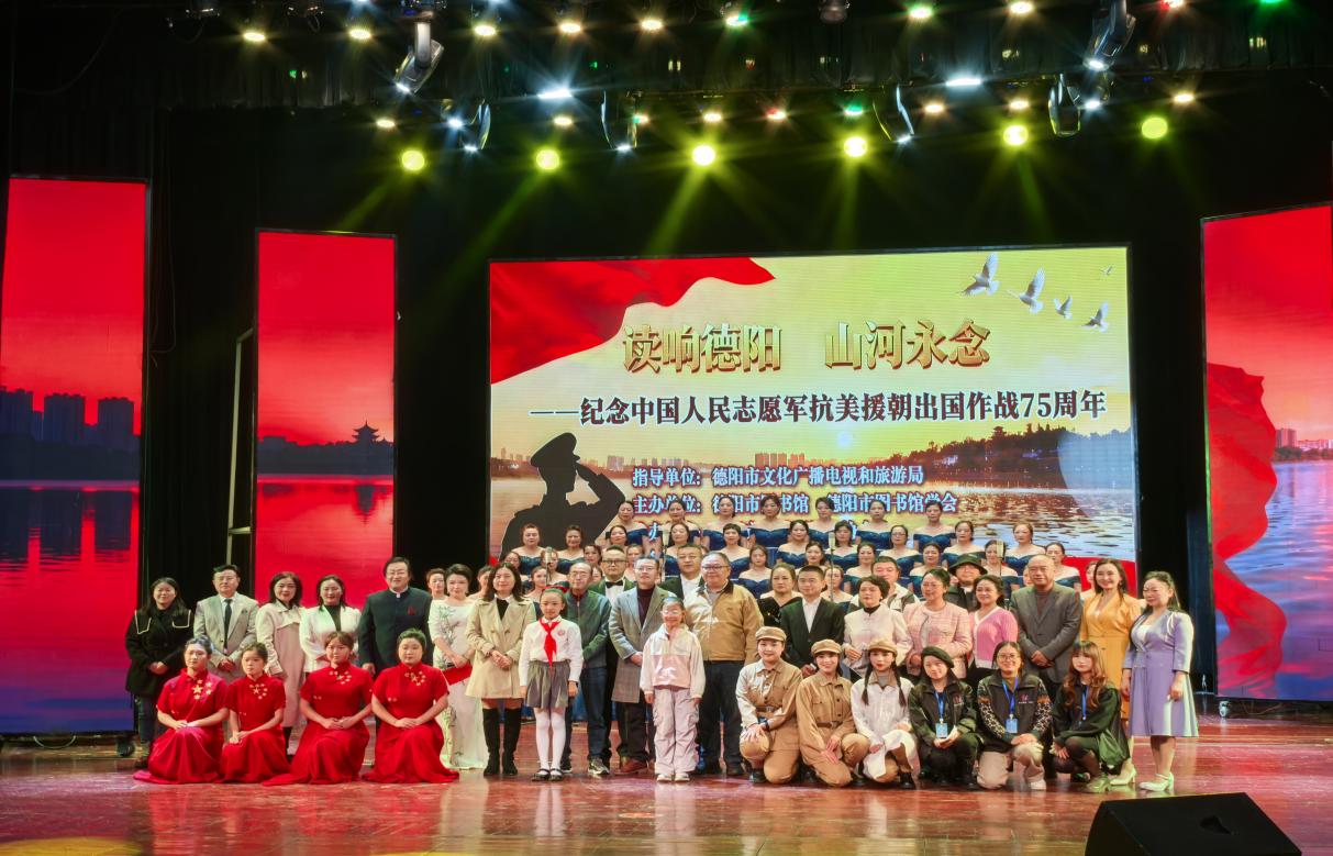 当晚,“读响德阳 山河永念——纪念中国人民志愿军出国作战75周年”专场汇演在德阳市艺术宫如期举行,汇演围绕“英雄叙事——烽火岁月・铁血丹心”“文艺战地——以文铸剑・气壮山河”“精神传承——初心不改・继往开来”三个篇章展开。西南财经大学天府学院学子再度登台,在红色故事展演环节演绎《烽火弦歌照罗江》。学子们以标准的普通话、饱满的情感传递先辈“不做亡国奴”的铮铮誓言,肢体语言自然得体,既还原了烽火岁月里的坚韧与热血,也展现了红色精神在当代的传承活力。当宣讲提及“先辈用跋涉守护的希望,正在我们手中绽放”时,现场掌声阵阵,不少观众被故事中的爱国情怀与坚守精神深深打动。