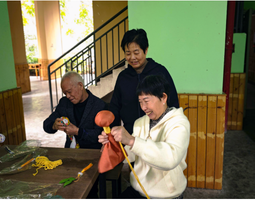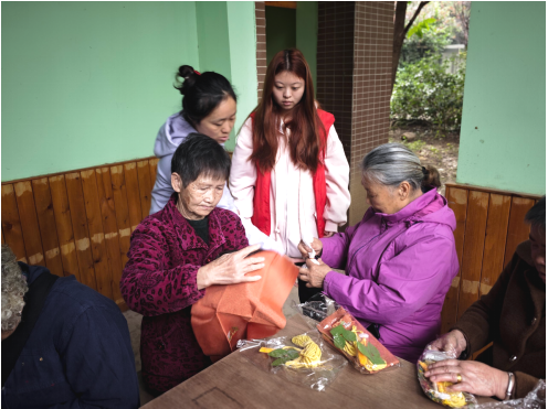 社区工作人员为大家详细讲解本次活动中艾草锤的制作方法,支部师生与社区工作人员分组协作,开启了艾草锤的制作工作。活动过程中,李思佳、朱琳、芶宇婧耐心地协助社区老年人完成艾草锤的制作。活动现场,支部师生与社区老人携手制作艾草锤,进一步加深了对传统节日文化的认识,大家共同度过了一段短暂却欢乐的时光,切实增进了校社联动。