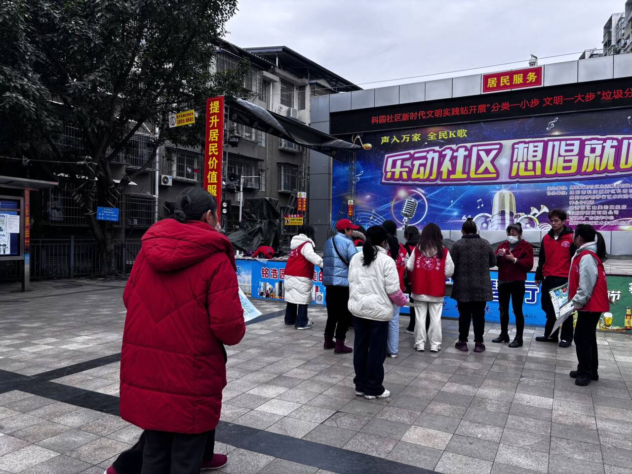 志愿者们组织居民们参加活动