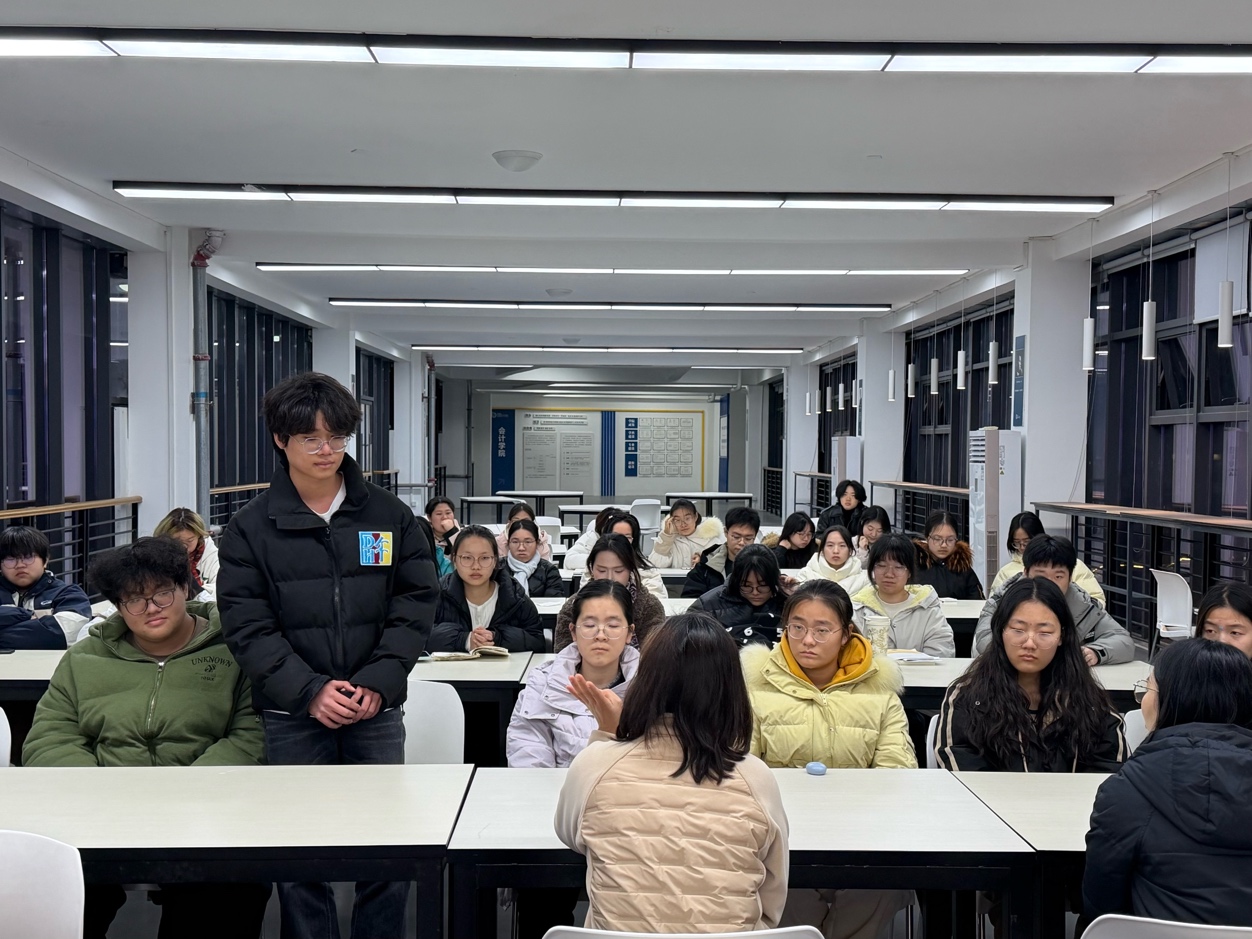 在学生分享与互动环节,几位曾参与实地调研的学生依次发言,结合走访德阳潺亭水务有限公司、西南污水处理有限公司等企业的调研经历,分享了在污水处理、环境管理等方面的现场观察与思考。同学们围绕调研中遇到的成本控制、环境会计等实务问题,与专家展开交流与探讨。此外,大家还就职业发展规划、专业技能提升、个人能力培养等话题踊跃提问,现场气氛热烈。钟小英结合自身在国有企业多年的管理实践经验,对同学们提出的问题逐一进行了细致回应与专业指导。