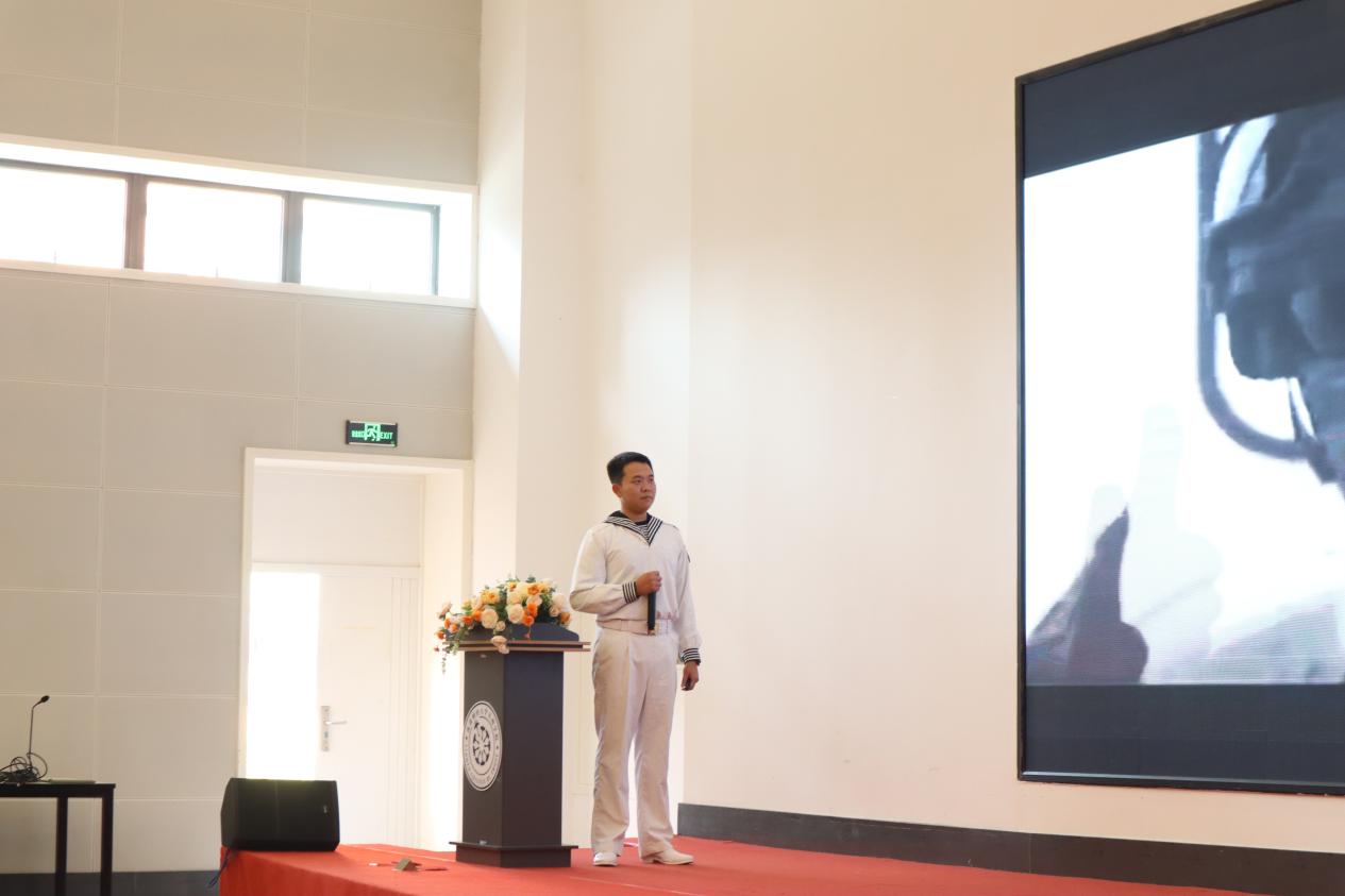 海军退役大学生何方元,以《把每一滴热血都流进祖国的大海》为题作分享。他展示了部队丰富多样的训练日常与战友间的深厚情谊,让在场同学真切感受到中国军人的坚毅品格与军营的火热氛围。分享中展示的一张张照片,更是牢牢牵动着同学们的心弦。