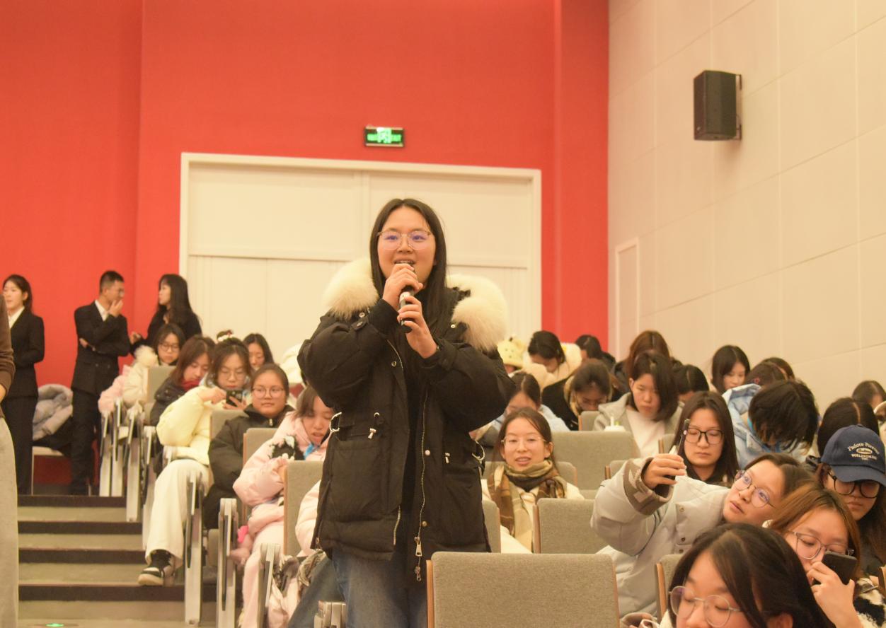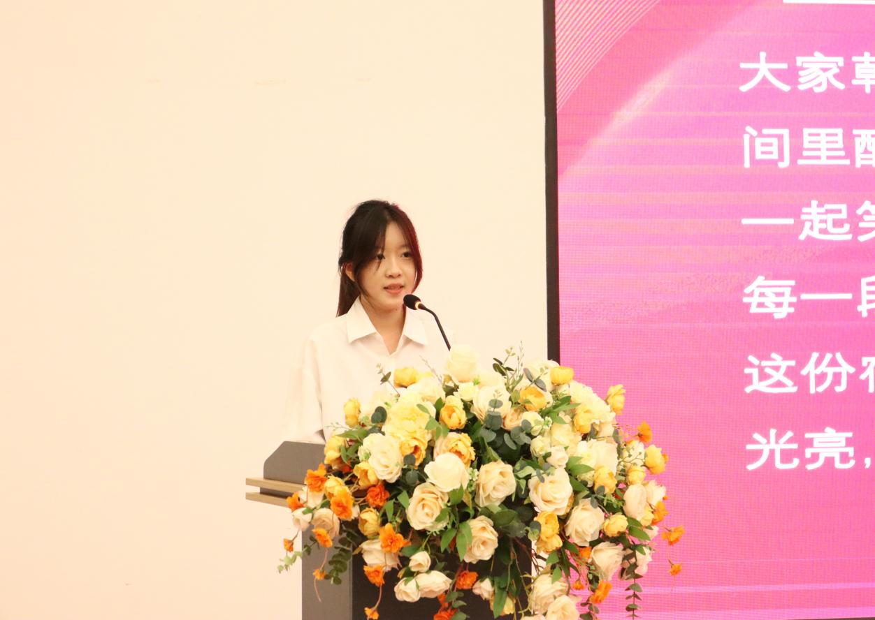 优秀学生代表张雅娴在发言中感慨,能作为学生代表见证这一荣光时刻倍感荣幸。回望过去一年,学院全体师生凝心聚力,涌现出许多先进典型。她分享了自己入选九三阅兵民兵方阵的经历,那段追求“米秒不差”的时光让她深刻懂得,每一份荣光背后都是日复一日的坚守与全力以赴的拼搏,这份精神力量也融入了求学之路。她表示,获奖集体与个人的奋斗身影值得每个人学习,就像阅兵方阵离不开每一个人的努力,学院的成绩也凝聚着全体师生的付出。新的一年,愿大家以榜样为镜,书写更加璀璨的青春华章。