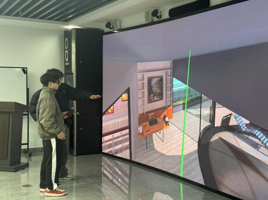 在基地学生讲解员的引导下,学生团队依次参观了虚拟现实创新实验中心、人工智能应用体验中心、数字经济产业创新研究院等多个功能区域。讲解员结合具体校企合作项目与实训场景,详细阐述了基地如何通过项目制教学、真实产业环境模拟等方式,培养学生的实践能力与创新思维。通过近距离观摩技术应用成果,学生团队切身感受了跨学科融合与产业前沿动态。