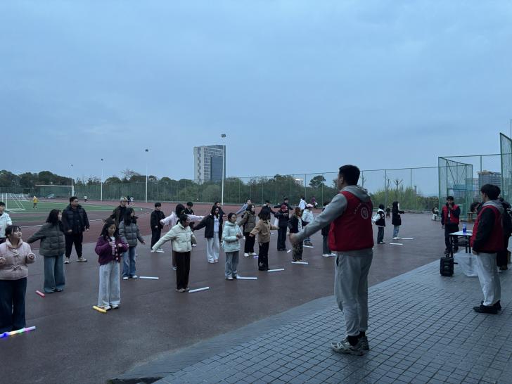 活动开始前,学院工作人员有序为到场同学分发荧光棒等亮光装备,五彩斑斓的荧光瞬间点亮校园夜色。在工作人员的带领下,全体参与者整齐列队,依次进行关节活动、动态拉伸、核心激活等热身训练,在这热烈欢快的氛围,大家舒展筋骨、调整状态,以饱满精神与充沛体能为即将开始的荧光夜跑做好充分准备。夜色渐浓,随着一声出发指令,全体参与者迈着轻快的步伐,围绕着操场正式开启荧光夜跑。大家手持荧光棒,井然有序地奔跑在跑道上,一圈又一圈,五彩荧光在夜色中连成流动的光带。同学们相互鼓励、结伴前行,在奔跑中释放压力、舒展身心,用脚步诠释青春活力,全程洋溢着轻松热烈、团结向上的美好氛围。