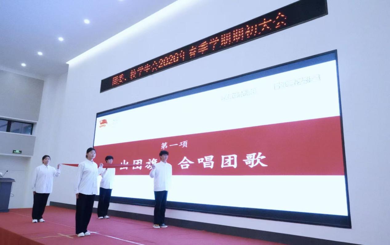 大会伊始,国旗护卫队队员迈着整齐有力的步伐护送团旗入场,全体成员肃立注目,齐声高唱中国共产主义青年团团歌。铿锵旋律与庄严仪式,展现了青年学子坚定的理想信念与强烈的使命担当,彰显了“青春为中国式现代化挺膺担当”的精神内核,为大会营造了庄重而昂扬的氛围。