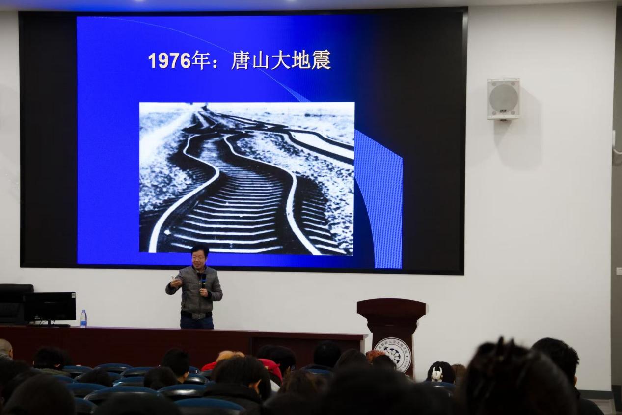 讲座现场,孟建伟凭借丰富的案例和深刻的理论,结合唐山大地震、南水北调工程等重大事件,以及金训华、陈永贵和郭凤莲带领的大寨铁姑娘队等典型人物与群体事迹,从历史与现实、个人与社会的双重维度,深入剖析人生意义与价值的核心内涵。珍贵的历史影像搭配生动的故事讲述,让在场师生直观地感受到不同时代人们对人生价值的追求与践行,深切体会到奉献、担当与坚守的精神力量。