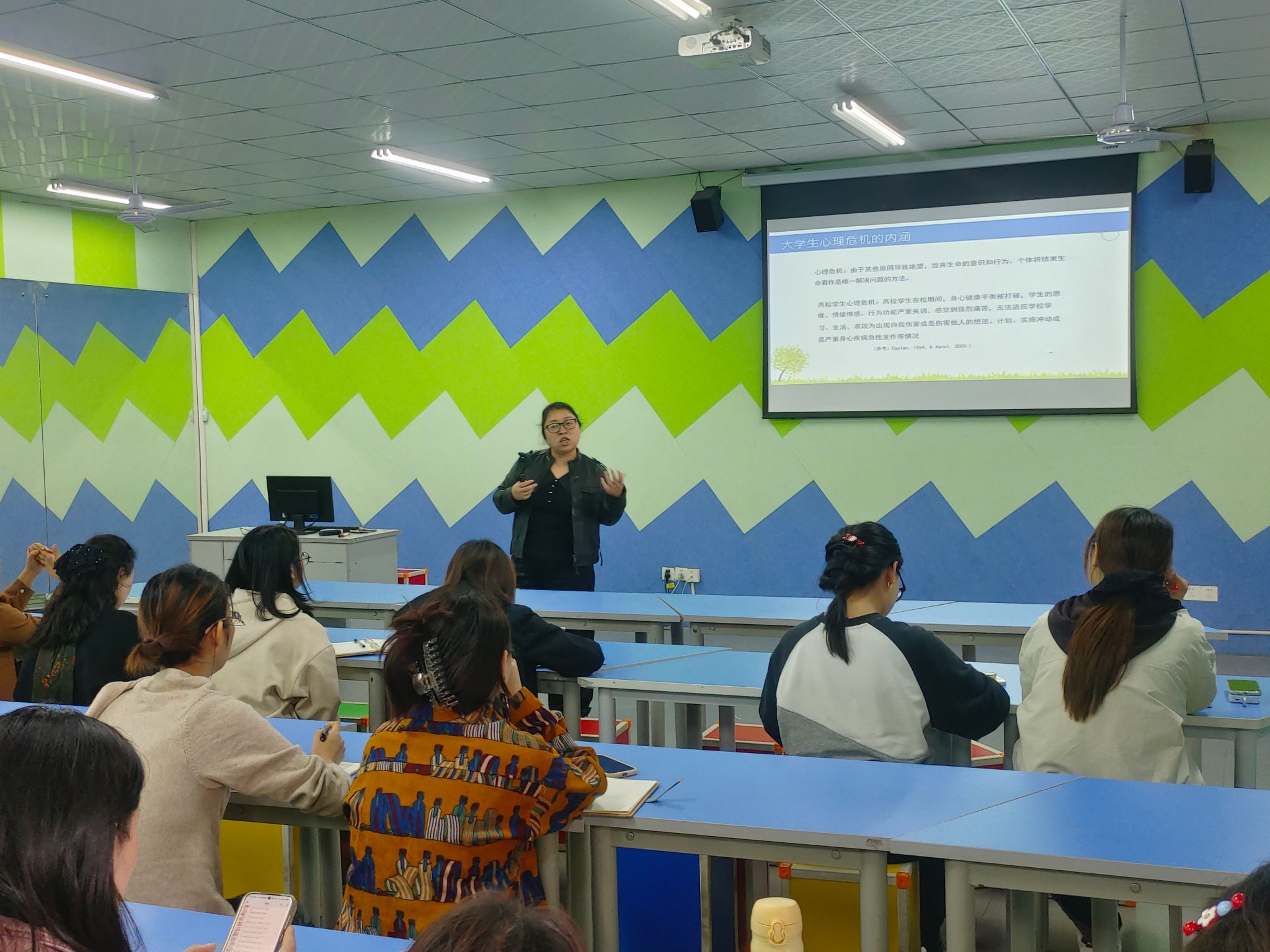 为提升学院辅导员对大学生心理危机的识别与干预能力,切实筑牢校园安全防线,10月17日上午,文化与教育学院在三教声乐室举办了“全人教育视域下的大学生心理危机干预培训会”。此次培训由学院分党委书记邓毅担任主讲,学院全体辅导员参加。