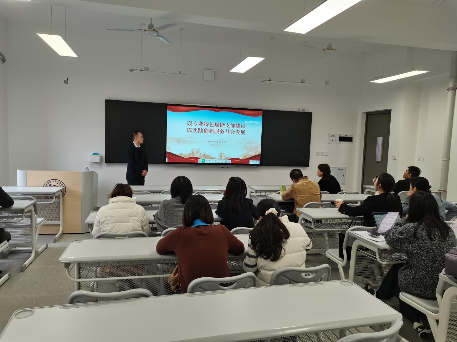 10月29日,为提升“双带头人”教师党支部书记工作室建设质量,现代管理学院特邀四川传媒学院省级“双带头人”教师党支部书记工作室负责人赵玉文副教授在绵阳校区5402开展“‘双带头人’教师党支部书记工作室建设提质增效”专题讲座。现代管理学院全体教师参加讲座,学院分党委书记倪娅副教授主持本次讲座。