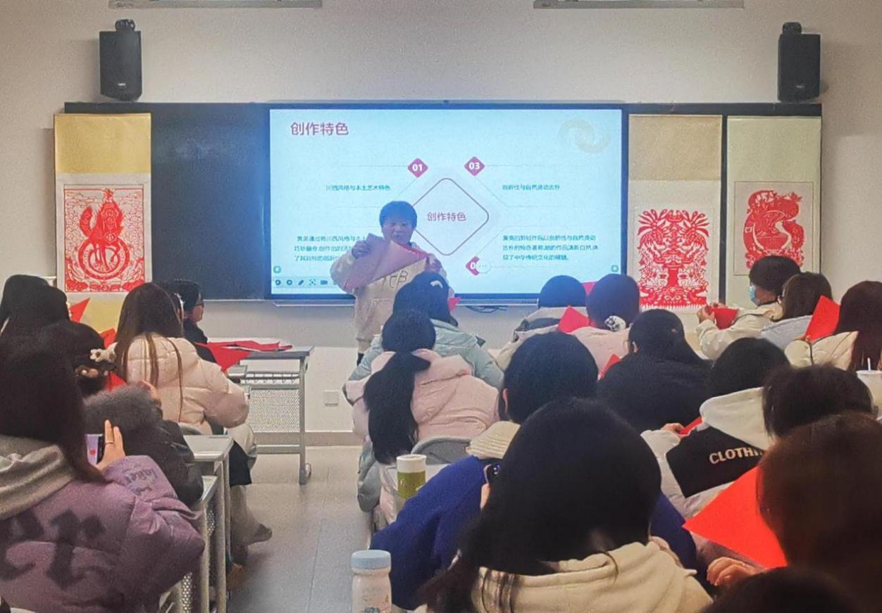 12月30日下午,中国民间艺术家协会会员、高级工艺美术师黄英教授应邀来到学校,在五教5408教室为师生带来了一堂生动深刻的非遗剪纸技艺研习课。本次课程由应用语言学研究中心主任郭家宏老师主持,文化与教育学院语言文学系王祥熙教授、徐颖懿博士和2024级英语01班、英语02班、英语师范01班的同学们共同参与了本次研习活动。