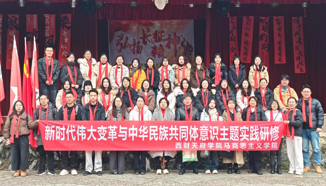 2025年12月30日,马克思主义学院赴绵阳市平武县走马羌寨,开展“新时代伟大变革与中华民族共同体意识”主题实践研修活动。本次活动由学院院长丁灵芝带队,智能科技学院与马克思主义学院40余名教师参加,旨在通过实地调研、文化体验与专题研讨,深化对新时代伟大变革与中华民族共同体意识的理解,提升思政课教学的实践性与时代性。