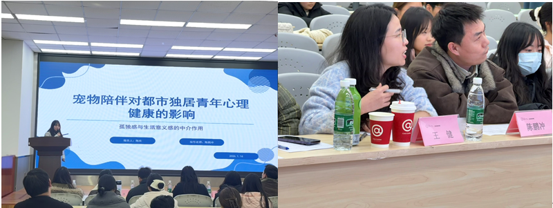 随后,“AI赋能科研技能提升包”团队的汇报有序进行。来自2024级匠心·青苗计划的肖万朋、陈欢等3位同学汇报了“基于注意力恢复与心流理论的舒适环境对深度体验的影响机制投入与忘记环境的中介作用检验”“宠物陪伴对都市独居青年心理健康的影响——孤独感与生活意义感的中介作用”“信息环境影响下工程造价专业学生考证意向的形成机制——基于心理认知的中介效应与理论整合的实证分析”为题目的论文写作思路、内容及主要结论。两位专家鼓励同学们在科研论文写作中继续深化对AI工具在数据处理方面的应用研究,逐步提升完成一些高质量论文并发表。