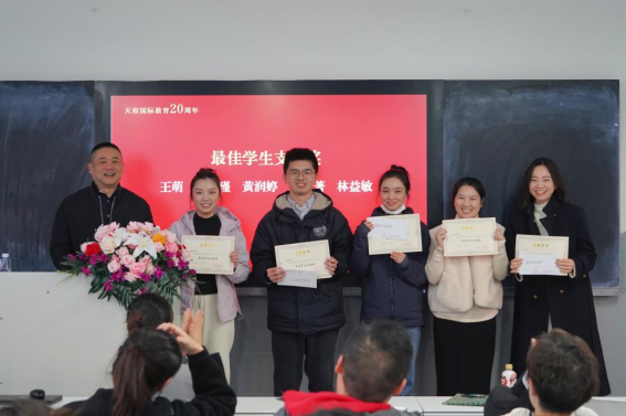 为最佳班导师奖获得者李漪飞、王萌、宋高南、李荣梦、衡曦颁奖