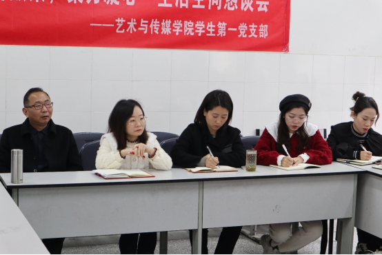 11月23日,艺术与传媒学院学生第一党支部在成都校区(东区)228教室开展了“建言献策,聚力凝心”生活空间恳谈会,旨在进一步深入贯彻学校育人理念,倾听学生心声、助力学生发展,切实解决学生在生活、学习等方面遇到的问题,提升学生的幸福感和归属感。学院党总支书记彭雯秀,支部全体辅导员、支部各年级学生代表参会,会议由支部书记虞飞主持。