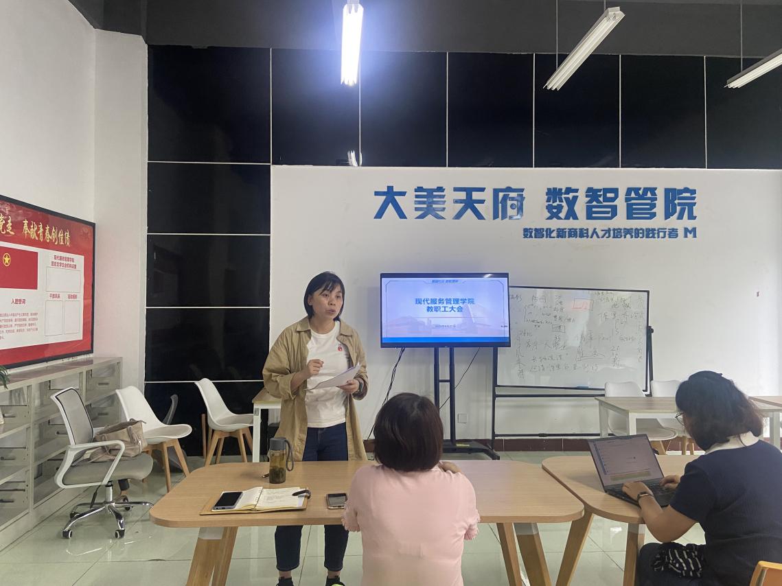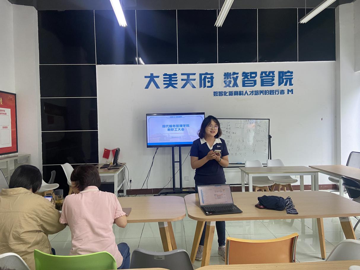9月27日下午,现代服务管理学院于绵阳校区B6-1会议室组织全院教职工召开2023年秋季学期9月教职工大会暨第2期AI工具系列专题培训。会议由学院党总支书记倪娅主持,副院长高丹,院长助理刘宇以及全体教职员工参加本次会议。