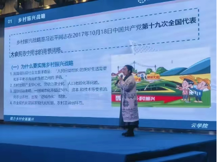 贾学梅就乡村振兴政策背景下的创业项目选择政策背景展开阐述。乡村振兴战略推动乡村产业振兴、乡村人才振兴、乡村文化振兴、乡村生态振兴和乡村组织振兴。创客应结合自己的行业展开:名特优新农产品打造,生产三品一标农产品,结合具体的案例开展产业振兴。