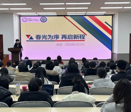 随后,陈小宁详细介绍了寒假任务总结、新年重点工作、系部工作任务及学院近期工作。她首先回顾了寒假期间学院教师所完成的各项任务,并对完成的任务进行了总结和评价。接着,详细阐述了新年的重点工作,人工智能背景下的教育教学改革。同时,她还对系部工作任务进行了具体安排,明确了各项工作的责任人和完成时限。在介绍学院近期工作时,陈小宁强调了要明确自身定位,发挥主观能动性。她要求全体教师要清晰地认识到自己在学院发展中的角色和定位,积极履行自己的职责和使命。同时,她鼓励大家要发挥主观能动性,勇于担当、敢于创新,为学院的发展贡献自己的力量。