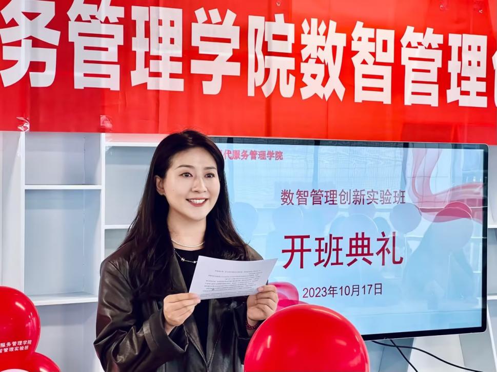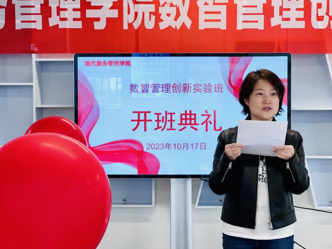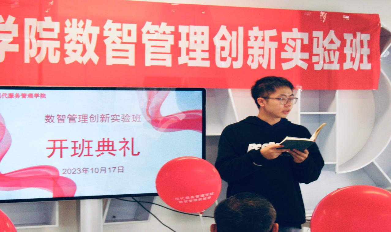 10月17日下午,现代服务管理学院数智管理创新实验班开班仪式在创新中心405室隆重举行。副校长刘强,副院长何亮、高丹出席会议。学院创新实验班全体同学,创新班班主任潘兰,辅导员牟文浩、赵颖共同出席了开班典礼。开班仪式由赵颖主持。