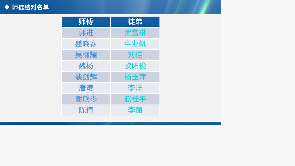 青蓝结对,携手同行;师徒同心,定胜于蓝。每一对师徒都将成为学院发展的重要力量,在学术研究、教育教学、人才培养等方面做出新的贡献。他们将以师徒同心的精神,共同开拓前行、迎接挑战,创造更加辉煌的明天,让我们满怀希望和信心,共同书写学院发展的新篇章,为学院教育事业的进步贡献自己的力量。