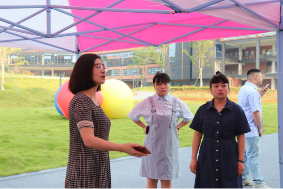 孟虹与志愿者沟通