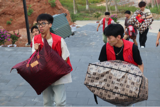 为保证迎新工作的顺利进行,学校特地安排运送新生行李的货车,往返于学校大门与宿舍楼栋,为新生报到提供便利。“同学,学院报到点在前面,我带你去”“同学你好,请有序排队,提前准备好报到材料”……迎新志愿者们不畏炎热,坚守岗位,为同学们热情指引、答疑解惑,成为校园里一抹靓丽的“志愿红”。辅导员和志愿者细心、贴心的服务,受到了新生和家长的一致称赞。
