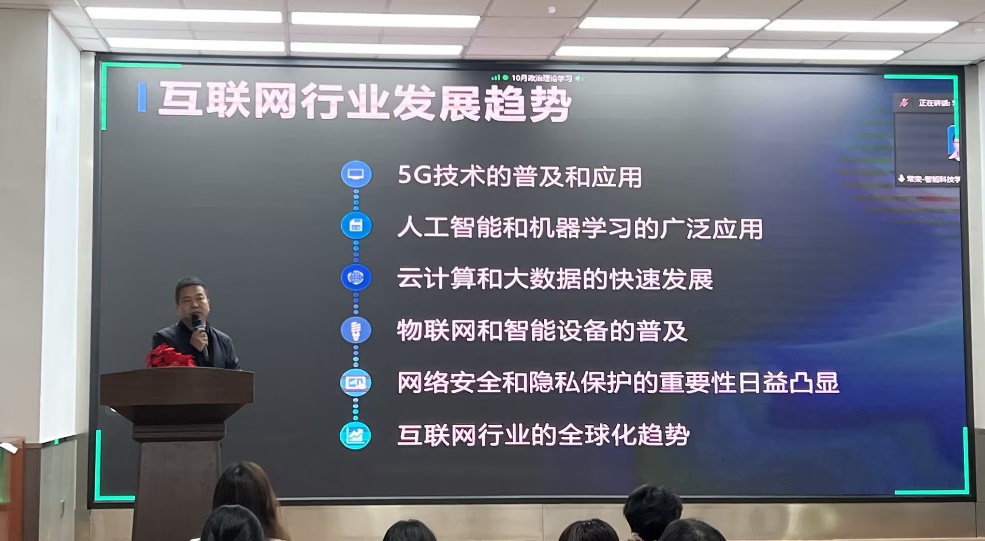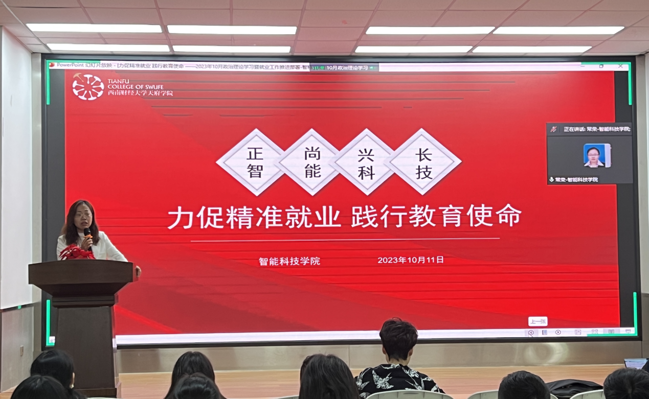 为贯彻落实党的二十大精神,大力弘扬培育“教育家”精神,将“教育家”精神融入学生工作中,加快建设教育强校的进程,全面做好学院2024届毕业生就业创业工作,提高人才培养质量,10月11日在实验楼110,智能科技学院开展了10月政治理论学习暨就业工作推进部署会。本次会议由学院党总支书记常荣主持,全院教职工以线上线下结合的方式积极参与。