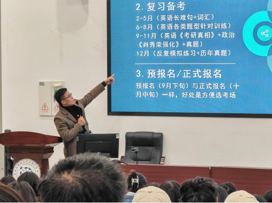 张元辰以自己的亲身经历和丰富的知识储备为同学们详细解读了考研的各个环节,帮助同学们能更好地了解和准备研究生考试。他主要从什么是考研、考研的意义以及考研前期需要做的准备工作这三个方面进行讲解,同时他还向大家分享了备考技巧和策略,以及全年考研规划。会上,同学们认真听取了交流分享,对未来的考研之路具有更加明确的规划。张元辰耐心地给同学们讲解了与考研相关的各类知识,使同学们对考研有了更深入的了解。此外,与会学生还填写了一份有关个人未来就业意向的调查问卷,这将有助于他们明确未来的职业规划和发展方向。通过这次交流会,同学们不仅收获了丰富的考研知识,还结识了志同道合的朋友们,共同成长和进步。