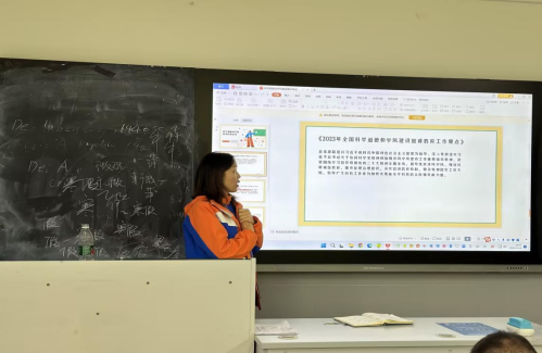 詹议向老师们介绍推动科学道德和学风建设融入思政教育全链条的相关内容,学校将依托“风启学林”学风涵养主题社区、国家智慧高教等平台,推出传播一批涵盖学术规范、学风宣讲、诚信教育的优秀传播作品。同时,宣讲会现场也分享了两个“风启学林”上精彩视频,《学习改变命运,坚持成就人生——海洋学院蒙冕模》以及《教有真情 育无止境-大外教师刘艳春》,老师们通过观看视频,也深深地被科学家精神所感染。