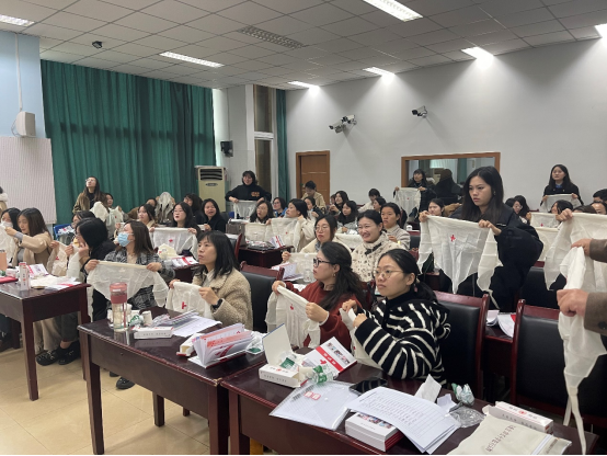 在培训中,谭爱梅通过实演、实练、实操的方式,向辅导员普及急救知识和技能,使“第一目击者”能够转变为“第一施救者”开展现场急救,最大限度地为他人减轻痛苦、减轻伤残、挽救生命。整个教学过程,辅导员们认真学习,积极提问,踊跃实践,与谭老师展开良性互动,现场学习氛围浓厚,最终所有学员都顺利完成线上理论学习与测试、线下实操与考核,成为一名合格的红十字应急救护员。