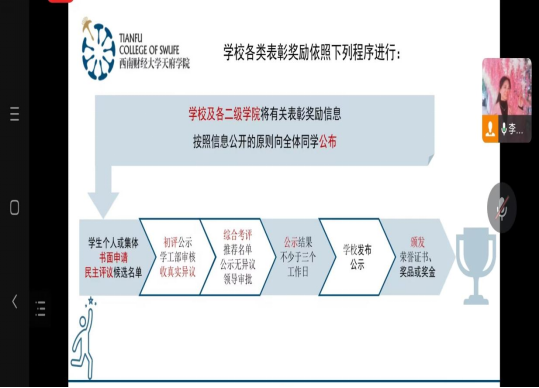 会议伊始,李金玲指出此次培训会的目的,并重点强调测评细则改动之处,随后,李金玲详细介绍了学生表彰奖励办法(试行)规则及各项奖励的评选条件,以及综合测评的工作流程以及注意事项,为后续综合素质测评工作准确、标准、规范的进行打下了良好基础。她强调,综合素质测评是学生评奖评优的基础,关系到广大学生的切身利益和成长发展,辅导员一定要熟悉评优工作细则,严格执行工作要求,把综测工作做实做细,将“公平、公正、公开”原则贯穿综合测评全过程,保证测评工作经得起检验。最后,李金玲针对参会人员提出的问题一一进行解答。