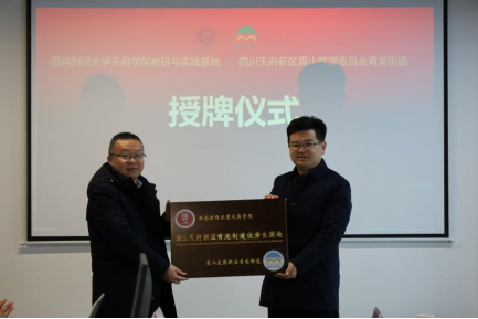 接着,在全场领导和师生的共同见证下,建筑与工程学院与眉山市彭山区人民政府青龙街道基地授牌仪式顺利完成。