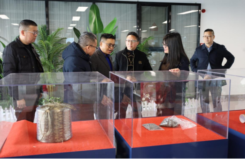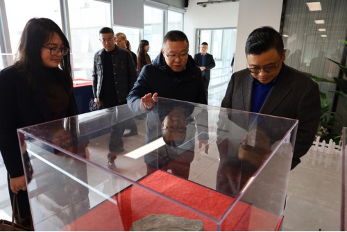 随后,校企合作方人员来到创新创业中心玄武岩研究院。韩记介绍了研究院的发展历程,并对展厅中展示的玄武岩材料进行了详细的介绍,包括玄武岩材料具备的各种性能,目前产品中的应用情况、产业链的分布情况以及未来的市场前景等多个方面。