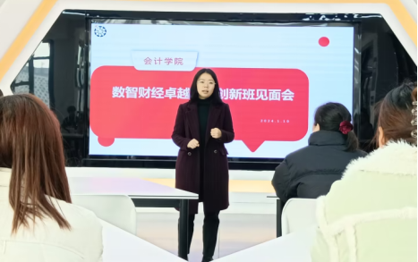为促进2023级数智财经卓越人才创新班的学生与导师的交流与合作,1月10日,数智财经卓越人才创新班见面会在德阳校区财务共享中心举行。本次见面会由会计学院副院长许静主持,会计学院院长陈真子,会计学院党总支副书记孟仁丹,以及各专业负责人出席本次见面会。