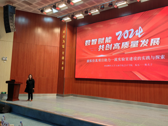 3月,数智赋能2024共创高质量发展院校人才培养发展论坛在贵阳举行。本次会议由用友新道科技股份有限公司和贵州省职业教育公共实训中心主办,来自贵州地区的高等院校和职业院校领导、行业专家、知名企业家等嘉宾共聚贵阳,聚焦“数智赋能2024共创高质量发展”,共商以数智化赋能教育高质量发展的新内容和新模式,共议高素质数智化人才培养的新路径和新方法。西财天府学院会计学院院长陈真子作为主讲嘉宾在论坛上做《虚拟仿真项目助力一流实验室的建设与探索》主题发言,分享了学校会计学院虚拟仿真项目建设的经验。