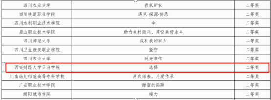 近期,由教育部高校思想政治理论课教学指导委员会主办的习近平新时代中国特色社会主义思想大学习领航计划主题教育活动“我心中的思政课”——第七届全国高校大学生微电影展示活动和“新思想引领新征程·新青年建功新时代”——第七届全国高校大学生讲思政课公开课展示活动,先后数月经大学生评委初评、专家评委复评以及统计奖项三个阶段,最终公布了获奖名单。西财天府学院马克思主义学院报送的作品《师生版焦点访谈之反腐》荣获微电影展示活动全国二等奖,《星星之火,终可燎“川”》荣获大学生讲思政课公开课展示活动全国三等奖,《选择》荣获微电影展示活动四川省二等奖。