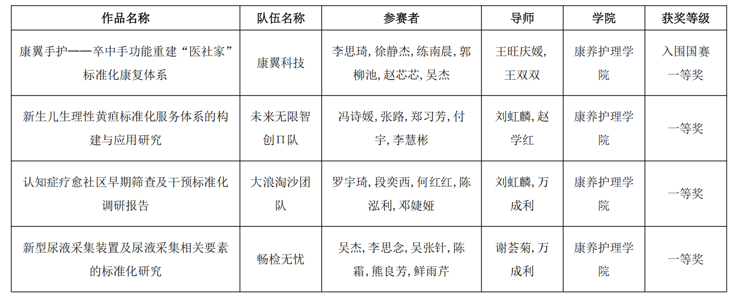 四川省大学生国际标准化奥林匹克竞赛紧扣第56届世界标准日主题为“美好世界的共同愿景:聚焦可持续发展目标17——促进目标实现的伙伴关系”,大赛主题涉及智慧城市、数字经济、可持续发展等方向,助力提升学生培养质量,促进标准化工程特色专业建设。学校康养护理学院学子在四川省大学生国际标准化奥林匹克竞赛中,荣获一等奖3项、二等奖1项;在全国大学生标准化奥林匹克竞赛西南区域赛中,4支参赛队伍均斩获一等奖,其中1支队伍成功晋级国赛,并将于10月19日赴浙江杭州参加全国大学生标准化奥林匹克竞赛全国总决赛。教师胡雯博、万成利、杨帆、谢荟菊、王旺庆媛、王双双、刘虹麟、赵学红获评“优秀指导老师”。