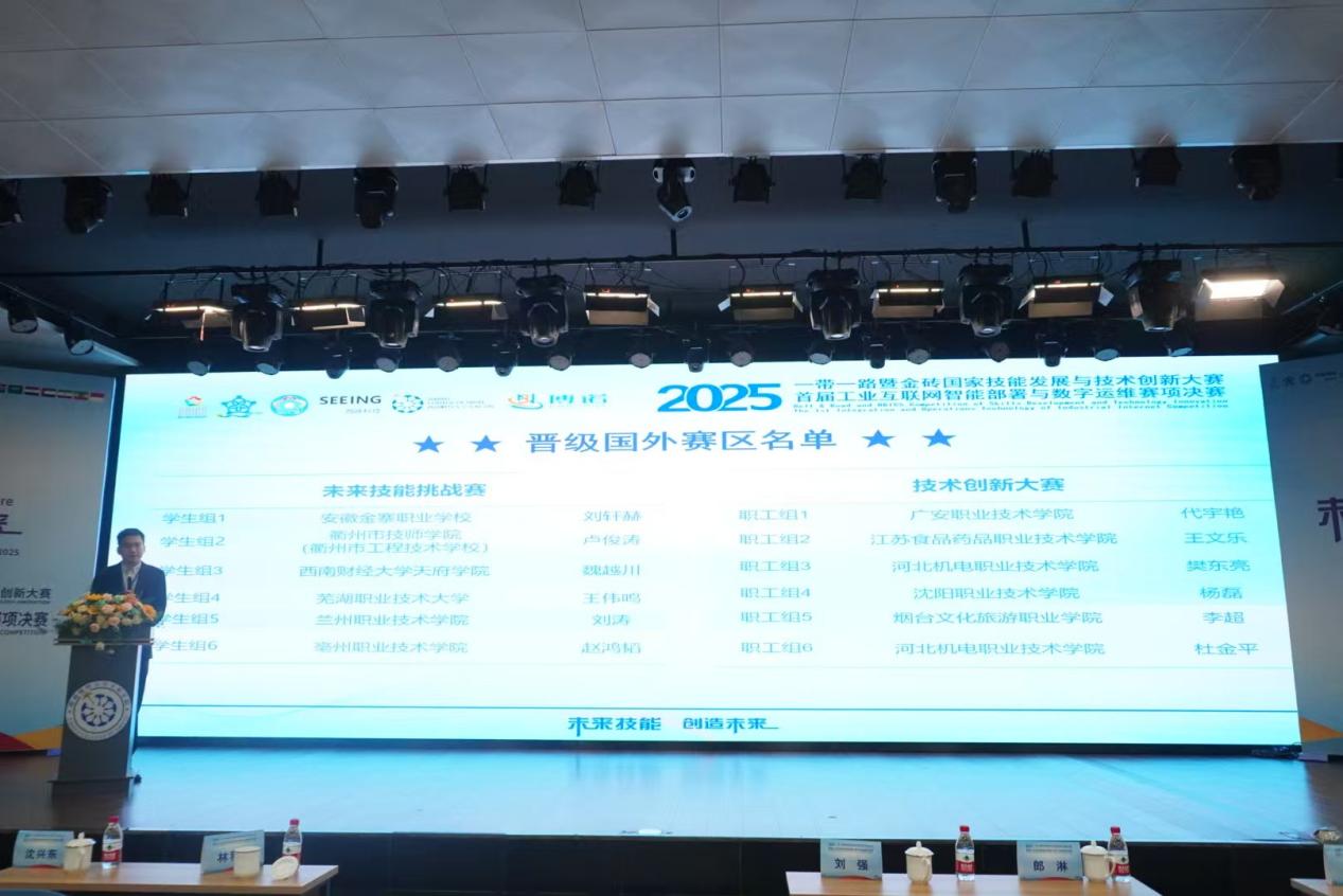 11月10日,2025“一带一路”暨金砖国家技能发展与技术创新大赛之首届工业互联网智能部署与数字运维赛项决赛闭幕式暨颁奖仪式在西南财经大学天府学院举行。经过2天的激烈角逐,来自国内外多所院校及单位的参赛选手圆满完成所有赛程,各大奖项全部决出。