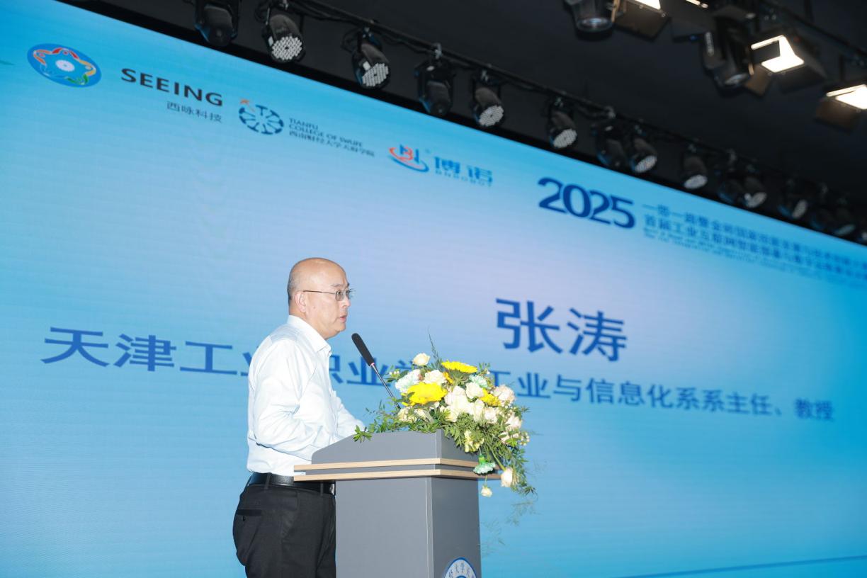 会上,天津工业职业学院工业与信息化系系主任、教授张涛对比赛模块做技术点评,他表示本次赛项紧扣工业互联网发展趋势,呈现了三大亮点,一是聚焦智能部署与数字运维核心技能,精准对接产业实际岗位需求,助力技能人才与行业发展同频共振;二是竞赛内容涵盖多技术融合应用,全面考查选手的系统操作能力、问题解决能力与创新思维;三是参赛选手展现出良好的职业素养与协作精神,国内选手技术功底扎实,国际选手融入度高,充分体现了“金砖+”合作的多元价值。