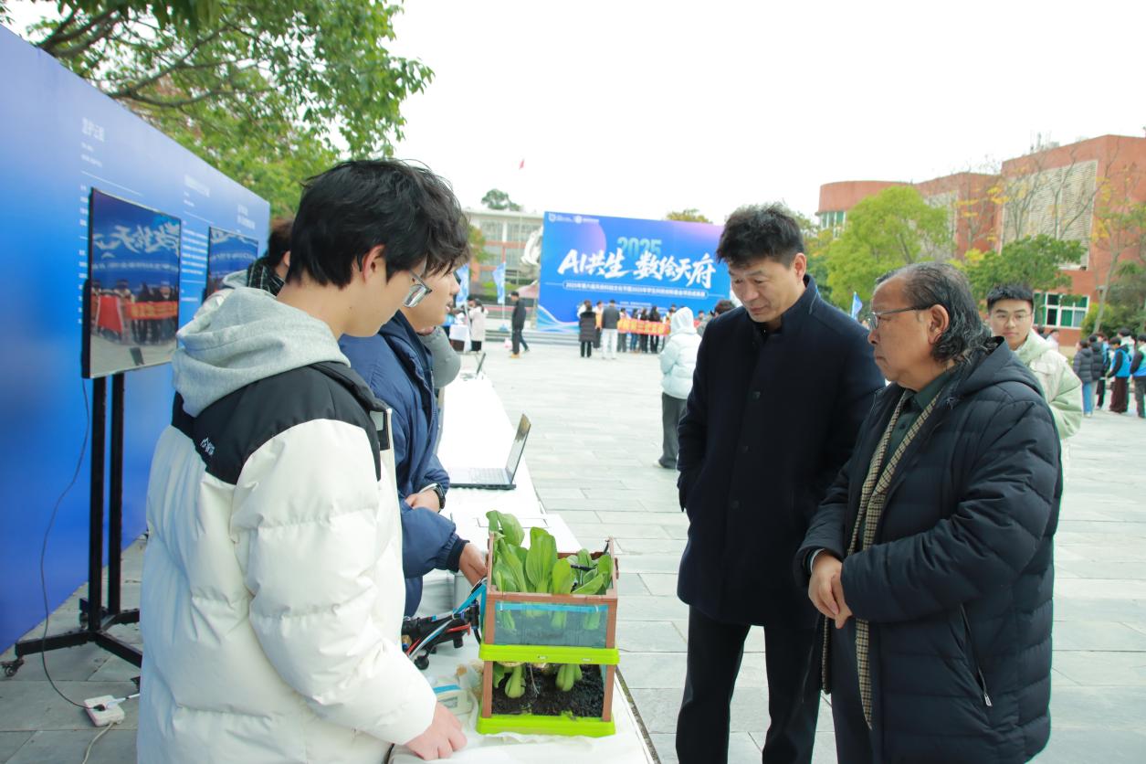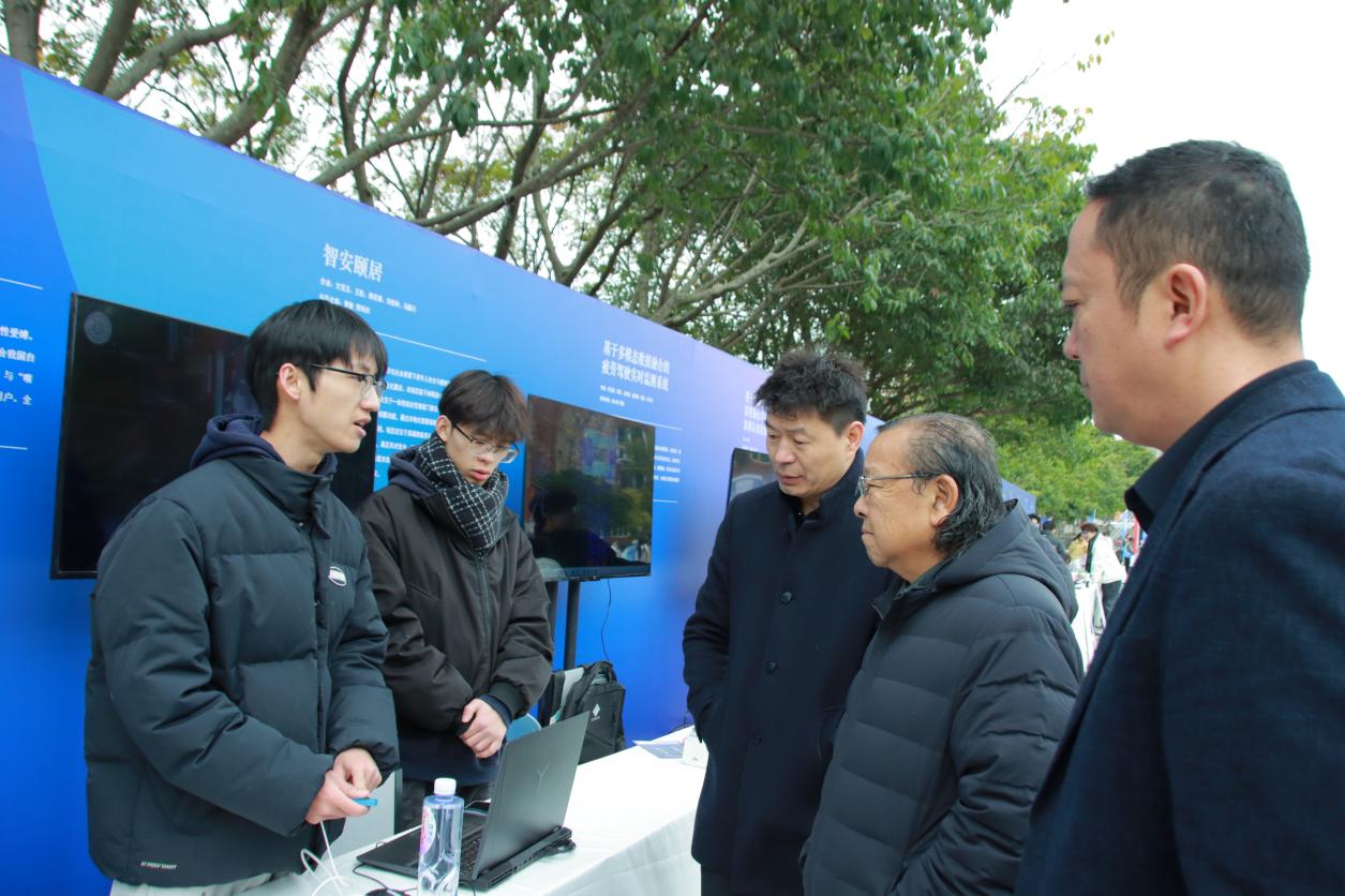 展览期间,学校领导与教师团队深入各个展区参观指导,与项目团队进行了亲切交流。他们一边认真观摩各项展品,一边详细了解了项目的创新思路与技术特点,对同学们展现出的专业素养和实践能力给予充分肯定。他们勉励同学们要始终保持探索热情,在科技创新道路上不断突破,将专业知识与社会需求紧密结合,为社会发展贡献青春力量。此外,活动还设置了投票环节,鼓励师生在参观后为自己喜爱的作品投票,进一步增强了活动的参与感和互动性。