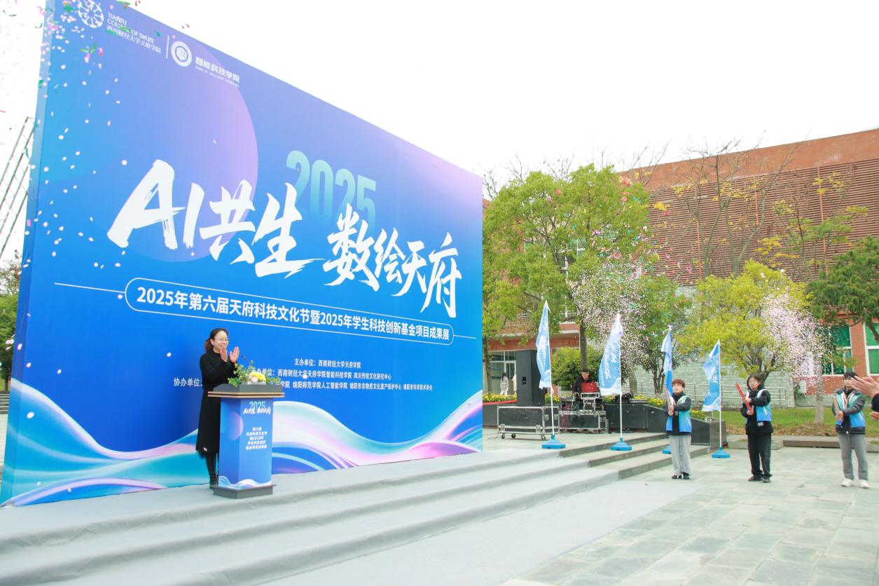 随后,在校领导、嘉宾与师生代表的共同见证下,常荣正式宣布“AI共生 数绘天府”2025年第六届天府科技文化节暨2025年学生科技创新基金项目成果展正式开幕,将现场气氛推向高潮。