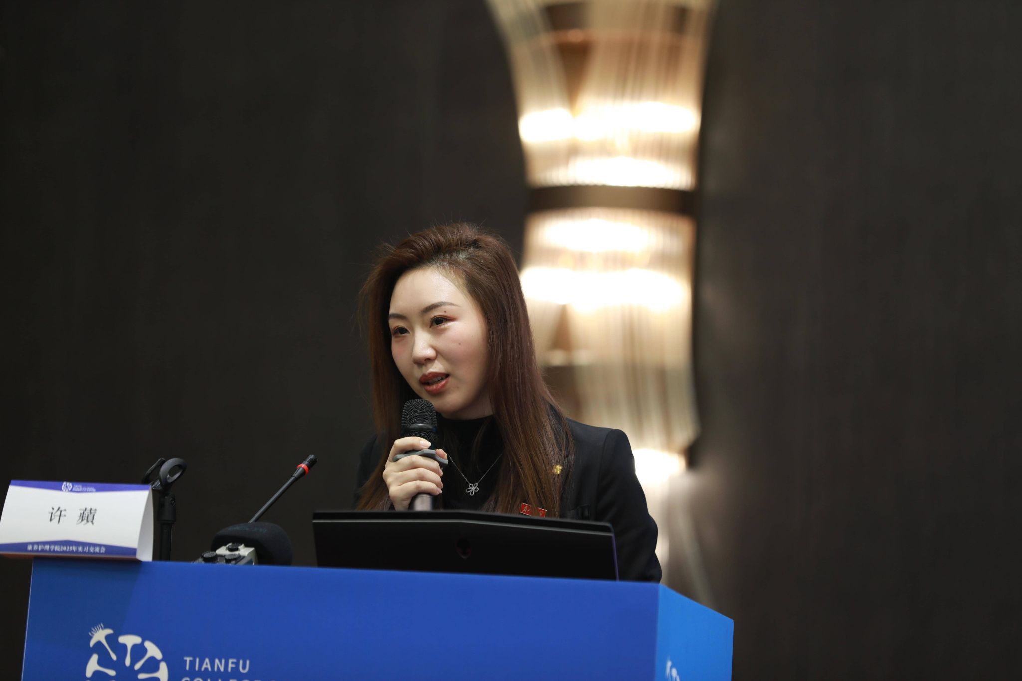 康养护理学院副院长王莲凤进行了“康养技能型人才培养模式的探索与实践”主题分享,她从学院建设背景、发展历程、人才培养模式、建设成效四个方面展现了学院在应用型人才培养方面的持续创新。