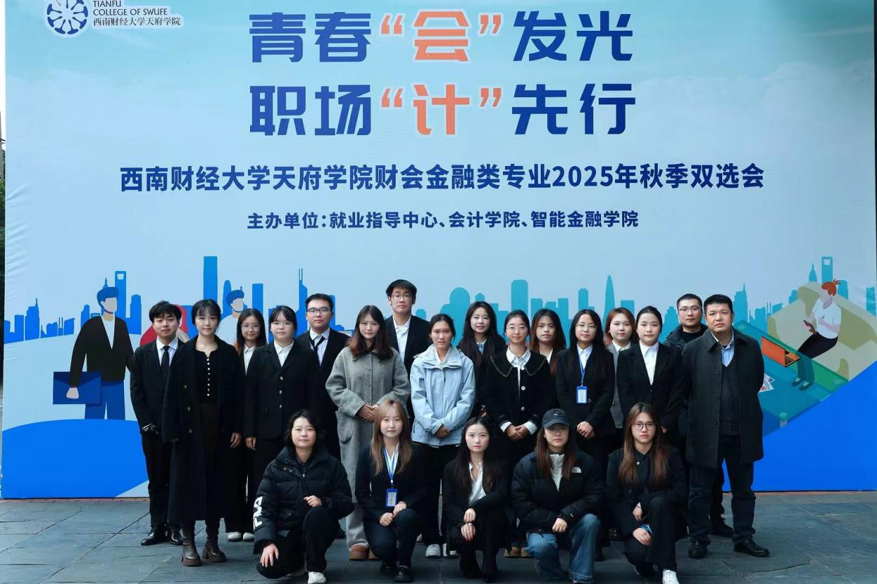 为抢抓2026届毕业生秋季求职关键期,精准护航会计学子求职之路,11月25日下午,学校就业指导中心、会计学院和金融学院联合举办的“青春‘会’发光,职场‘计’先行”西南财经大学天府学院财会金融类专业秋季双选会在成都校区(西区)1 号楼一楼大厅火热启幕。来自成渝地区的27家优质用人单位进校揽才,岗位需求覆盖会计核算、审计鉴证、税务筹划、财务助理等岗位。