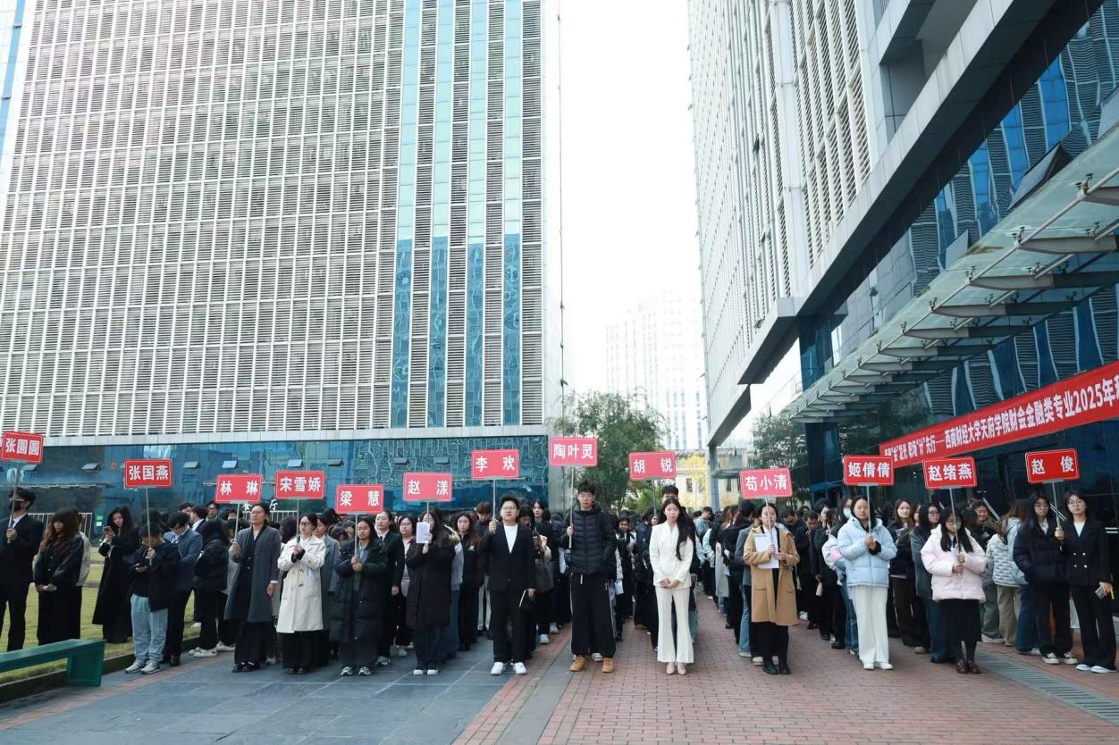 11月25日中午,成都校区(西区)全体毕业班学生在一号楼前整齐列队,静待入场。他们身着笔挺的正装,手握自己精心准备的简历,满怀期待地准备投递心仪企业,翻开职业生涯崭新而充满挑战的一页。