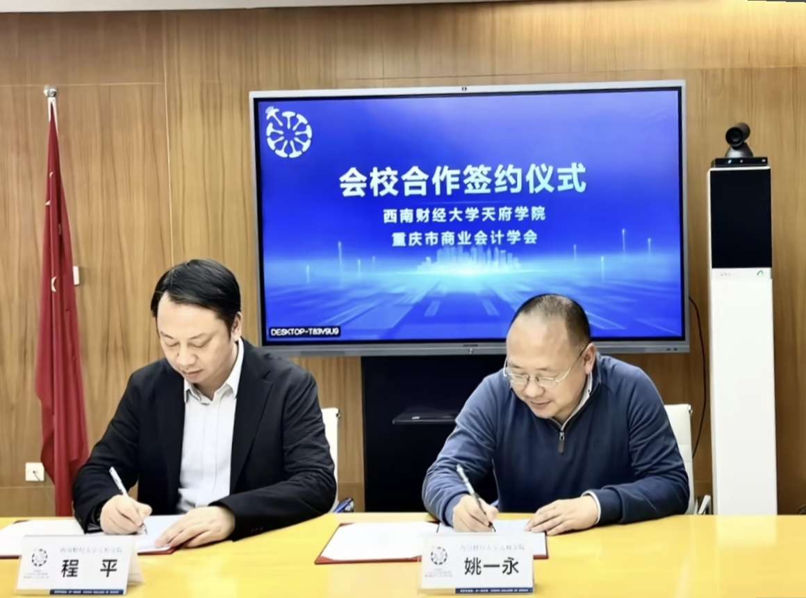 此次签约标志着西南财经大学天府学院与重庆市商业会计学会的合作迈入实质性阶段。未来,双方将携手打造集人才培养、技术创新、社会服务于一体的高水平产教融合平台,为西部地区数字财会事业发展提供坚实的人才支撑和智力保障。