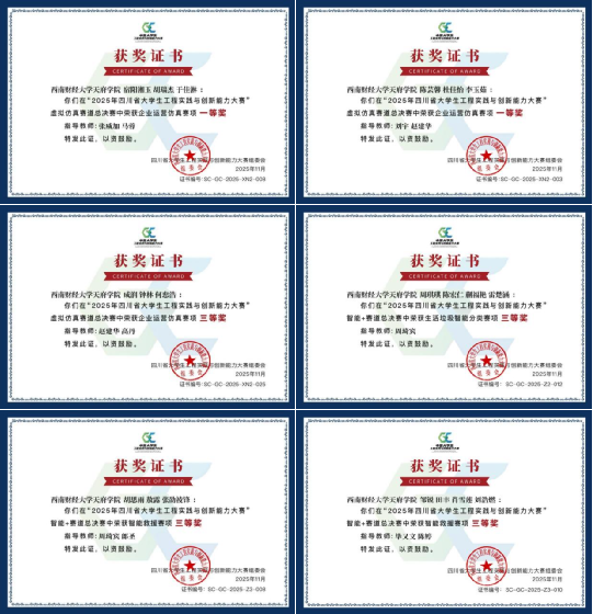 中国大学生工程实践与创新能力大赛是“全国普通高校学科竞赛排行榜”的重要赛事,是基于国内各高校综合性工程训练教学平台,面向全国在校本科生开展的科技创新工程实践活动。竞赛以“交叉融合工程创新求卓越,守德崇劳制造强国勇担当”为主题,深入推进工程教育改革,全面提升大学生工程创新综合素质和能力水平。2025年四川省大学生工程实践与创新能力大赛,是中国大学生工程实践与创新能力大赛的省级竞赛和选拔赛。本次竞赛设置4大赛道10个赛项,精准对接新质生产力培育需求。前期由工程与材料学院牵头组织报名和选拔,最终确定由现代服务管理学院和智能科技学院代表的6支队伍分别参加虚拟仿真赛道和智能+赛道总决赛,经过激烈比拼并获得优异成绩。这一成绩的取得,是参赛师生辛勤付出的成果,更是学校长期深耕实践育人的生动体现。
